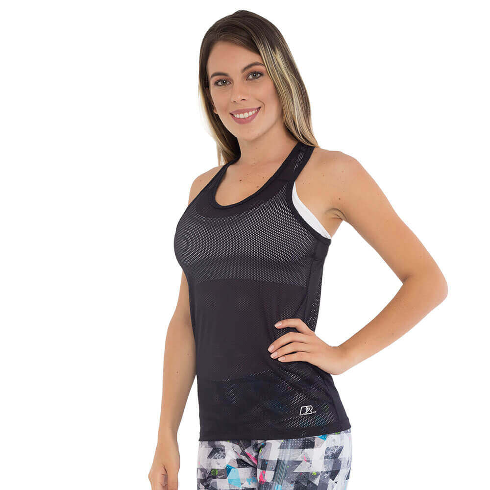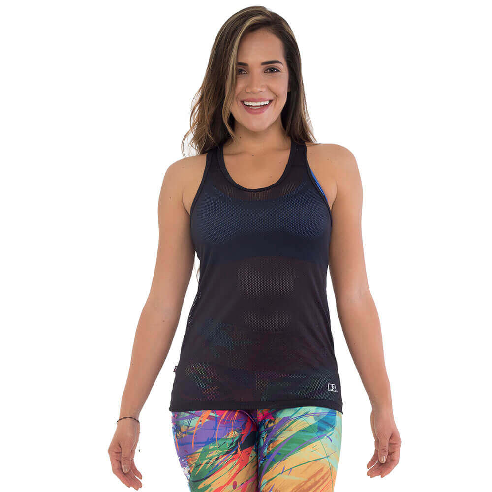 “Top tank con excelente caída Silueta ajustada. Su composición en nylon ofrece una frescura y tacto suave para proteger al contacto con la piel”.
