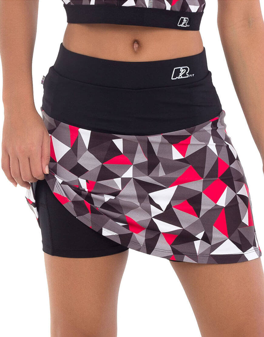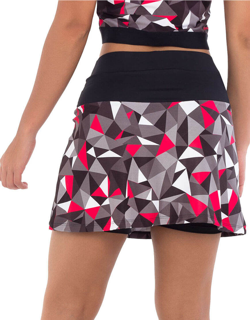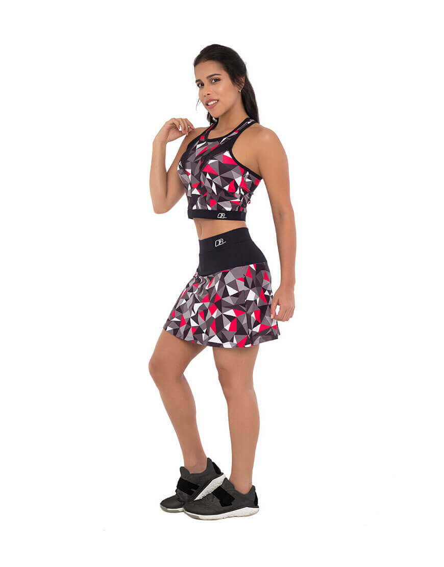 “Falda con short interno. Diseño que permite que la usuaria se vea bella y que su entrenamiento sea cómodo . El short interno lleva bolsillo para uso de celular.”